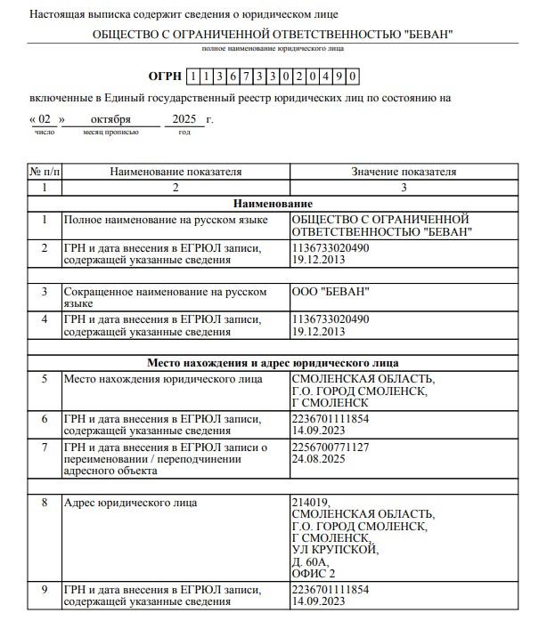 Последнее предприятие из списка расследователей, которое выдавало займы на строительство, — зарегистрированное в России ООО «Беван» (выписка из Единого госреестра юрлиц РФ). Оно занимается поставками товаров из Китая, перевозками, помогает с таможенными процедурами и сертификацией. Заем компании на фоне других кредиторов довольно скромный — 400 тыс. российских рублей (5,4 тыс. долларов), но ее вклад — беспроцентный.
